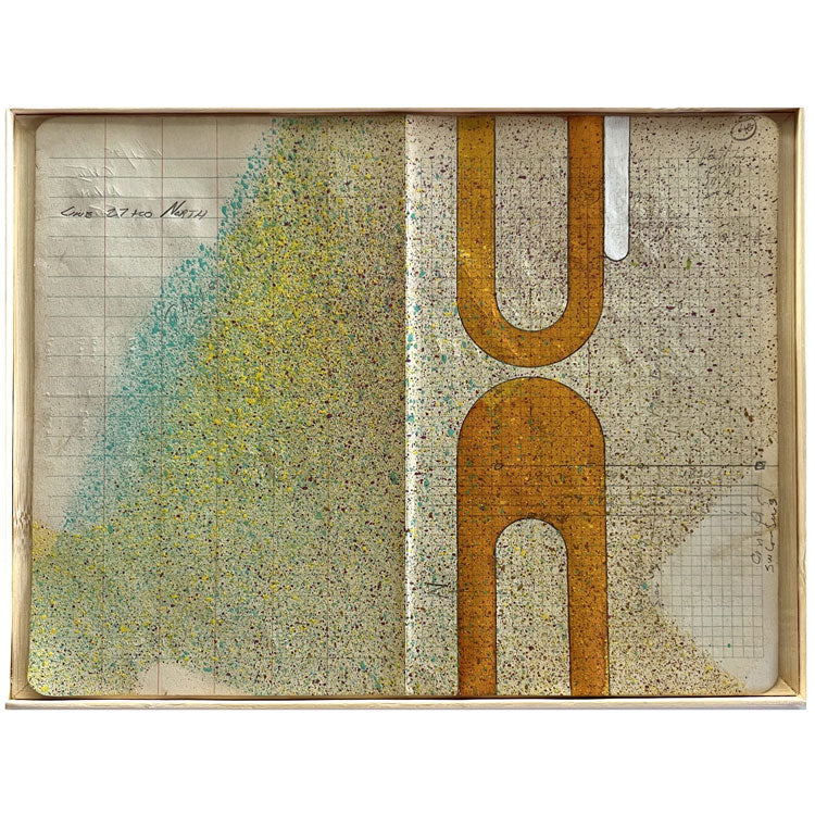 Mixed media on used field book paper in wood and bamboo