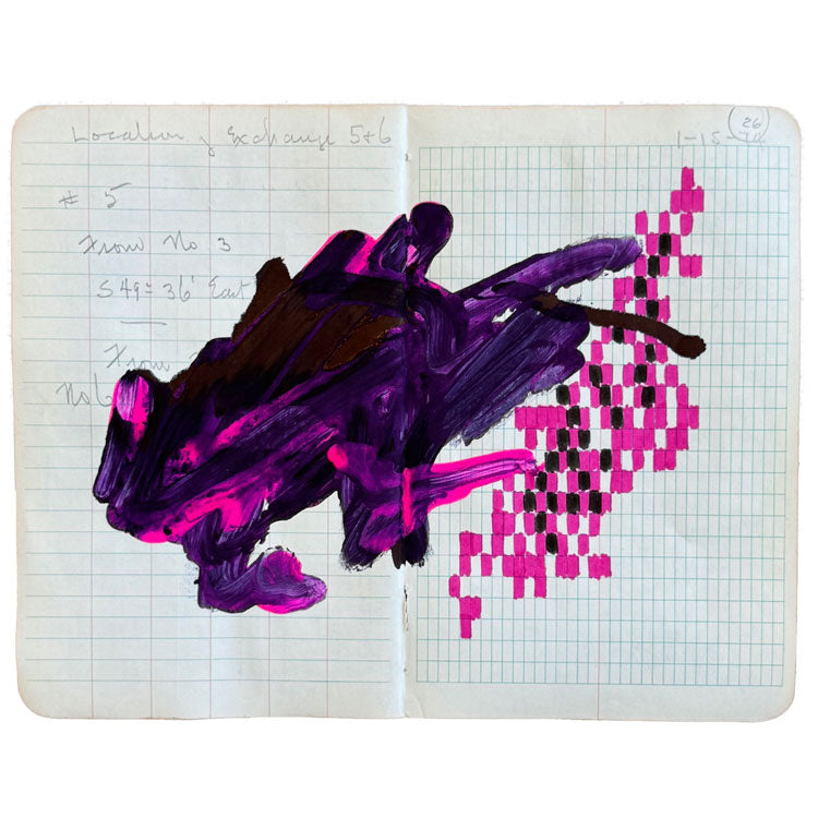 Mixed media on used field book paper
